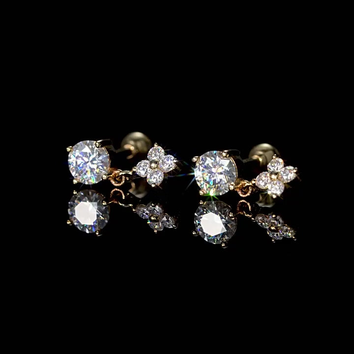 当社のモアッサナイトイヤリングは、ダイヤモンドに匹敵する卓越した輝きと輝きを、わずかなコストでご提供します。モアッサナイトはモース硬度9.25を誇るため、このダングルイヤリングは驚くほど耐久性に優れています。10Kゴールドのセッティングが永続的な品質を保証し、花柄のデザインは、ダイヤモンドスタッドイヤリングには欠けがちな独特のエレガンスを添えています。