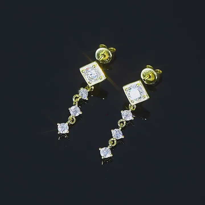 モアッサナイトのチェーンイヤリングは、その優れた屈折率により、ダイヤモンドイヤリングよりも輝きと輝きが際立ちます。ラボで生成されたこれらの石は、あらゆる照明条件において鮮やかに輝き、動きに合わせて光の反射が最大限に引き立つダングルイヤリングに最適です。