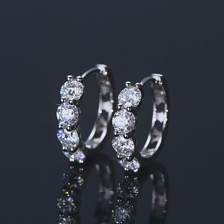 モアッサナイトのフープピアスは、ダイヤモンドよりも優れた輝きと輝きを放ち、より鮮やかな光の反射が特徴です。採掘されたダイヤモンドよりも環境にも優しく、わずかなコストでダイヤモンドと同等の贅沢な輝きを実現します。