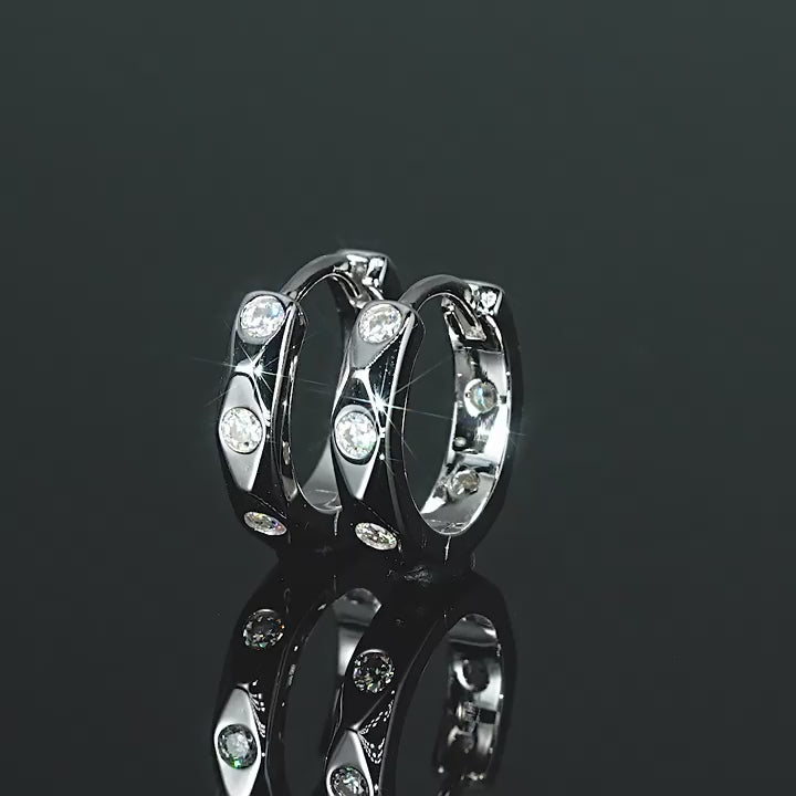 このハギーイヤリングに使用されているモアッサナイトは、ダイヤモンドに匹敵する卓越した輝きと輝きを、わずかなコストで実現しています。優れた光の屈折特性を持つモアッサナイトは、ダイヤモンドよりも手頃な価格でありながら、見事な輝きを放ちます。そのため、このスターリングシルバーのハギーイヤリングは、非常に価値のある逸品です。