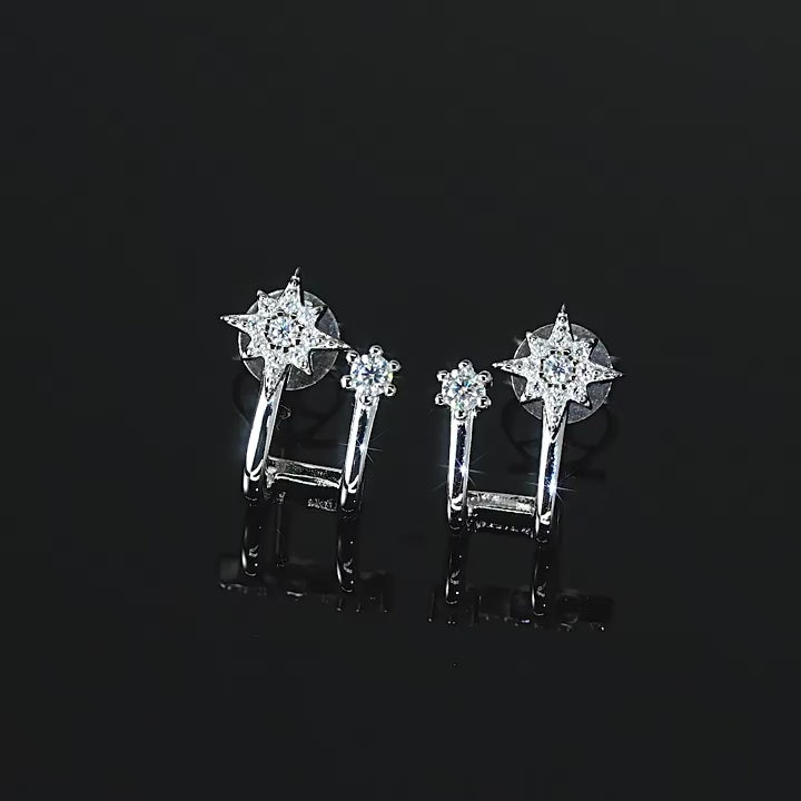6mm x 6mmのスターモアッサナイトイヤリングは、毎日のエレガントさを演出する小ぶりなスタッドイヤリングです。星型は、主張しすぎない視覚的なアクセントを添え、フラットバックデザインが快適な着け心地を実現します。片側1.2gのスターリングシルバーイヤリングは、一日中つけていられるほど軽量でありながら、美しい存在感を放ちます。